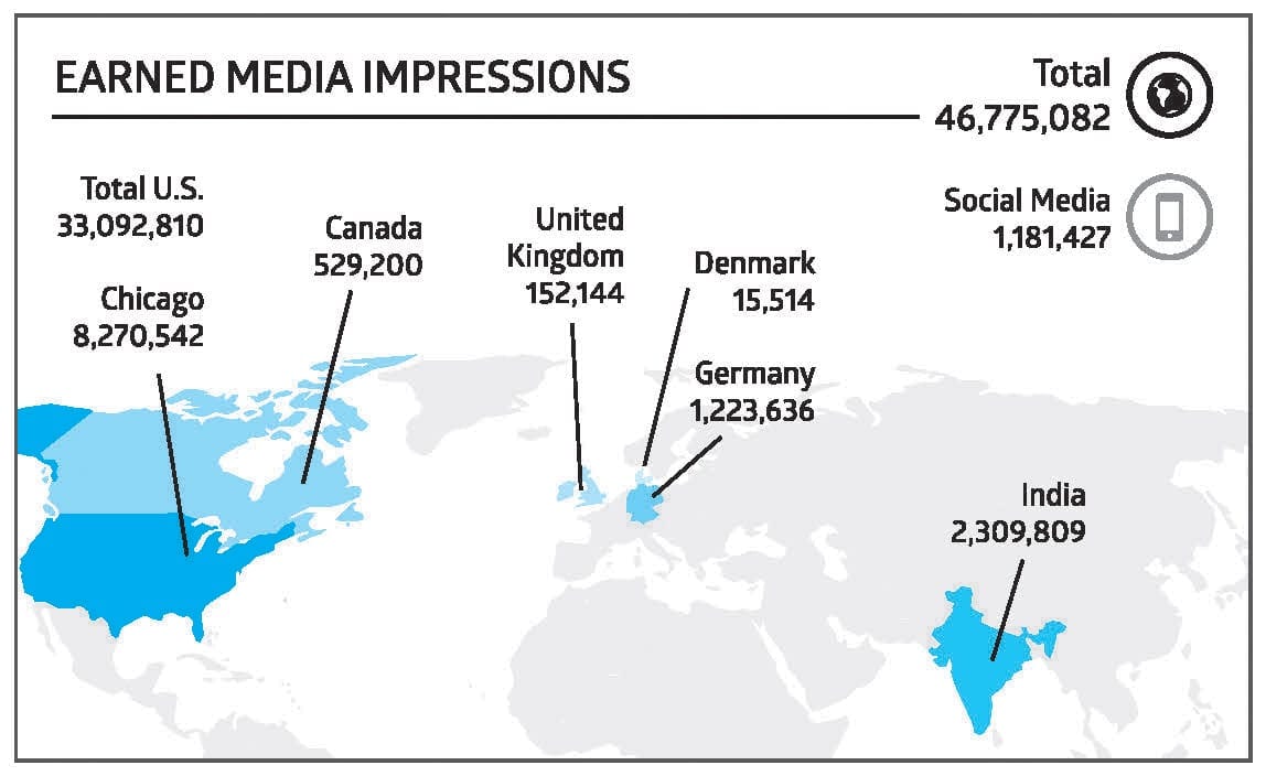 A successful media relations strategy yielded widespread local coverage in all of the top media outlets in Chicago, while the announcement generated more than 300 stories during the media campaign’s timeframe.