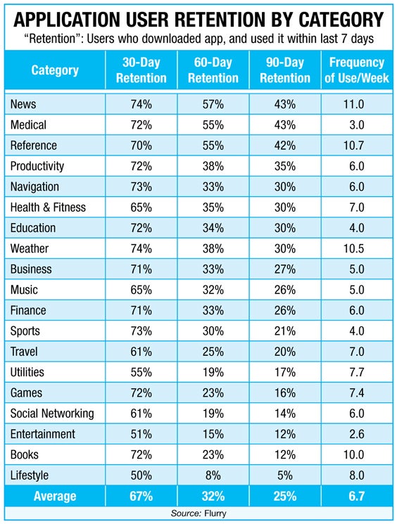 A key component of mobile apps is the ability to measure results. McComb measures Web site hits generated from the app, and she’s able to track consumers who hit brick-and-mortar stores after using it. In addition, there’s a number of analytics firms tracking a variety of metrics (see graphic).