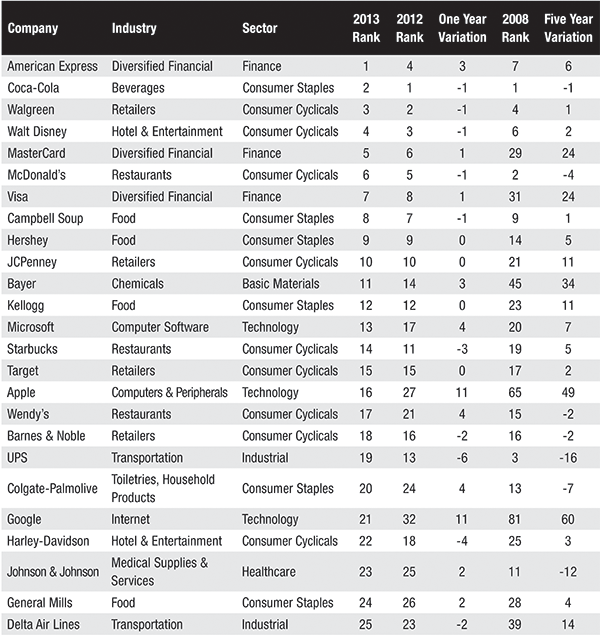 CoreBrand ranking shows the high-tech sector (naturally) gaining more familiarity in 2013, as did the credit card industry. Familiarity, of course, can often be a double-edged sword.