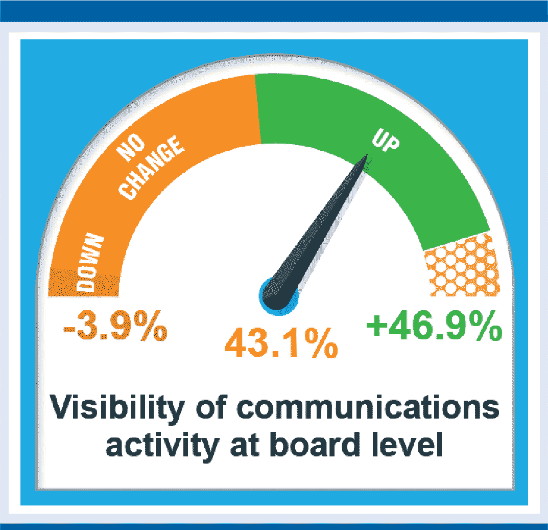 Corporate PR pros report that in Q2 2012, visibility of their communications activity at the board level is up nearly 50% (46.9%) from Q1, says a PULSE survey from Grayling PR, released in June.