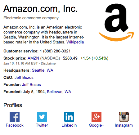 Now that we're all on the same page, Search Engine Land has reported that Google now includes in Knowledge panels links to brands' non-Google+ social network accounts. Google started including those links for well-known personalities in November, but not for brands. This feature is not automatic, though.