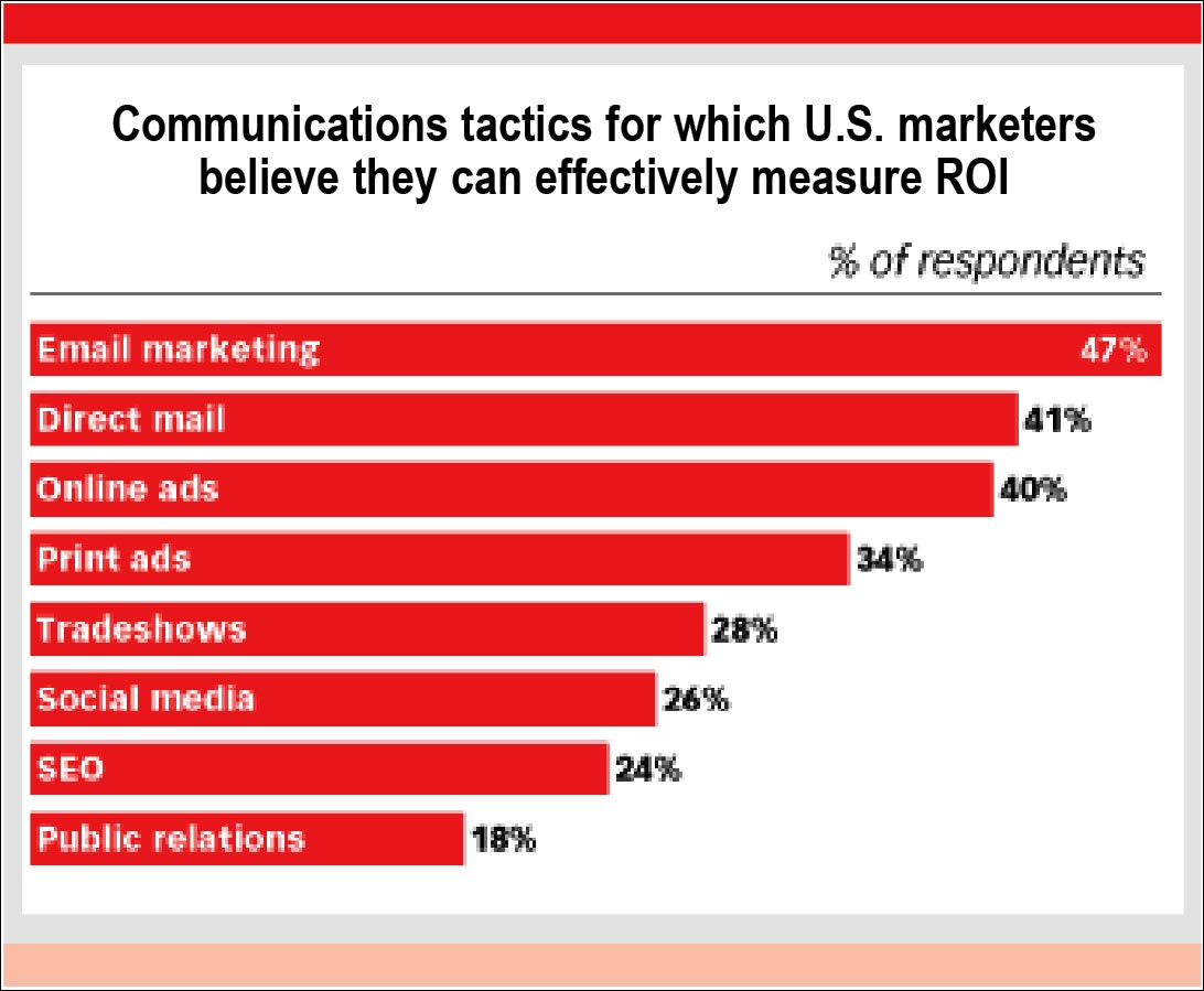 In a study by Ifbyphone, 82% of marketing pros say every campaign must be measured, but less than 50% believe that any communications tactic effectively shows ROI—with public relations bringing up the rear. Something to shoot for in 2012?