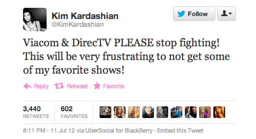 In DirecTV's July 11 statement, according to the Times, the company claimed that it tried hard to get Viacom to continue to negotiate, but "never heard back" from the company. Now, thanks to DirecTV's relatively positive standing in social media, Viacom is hearing back from thousands of DirecTV customers.