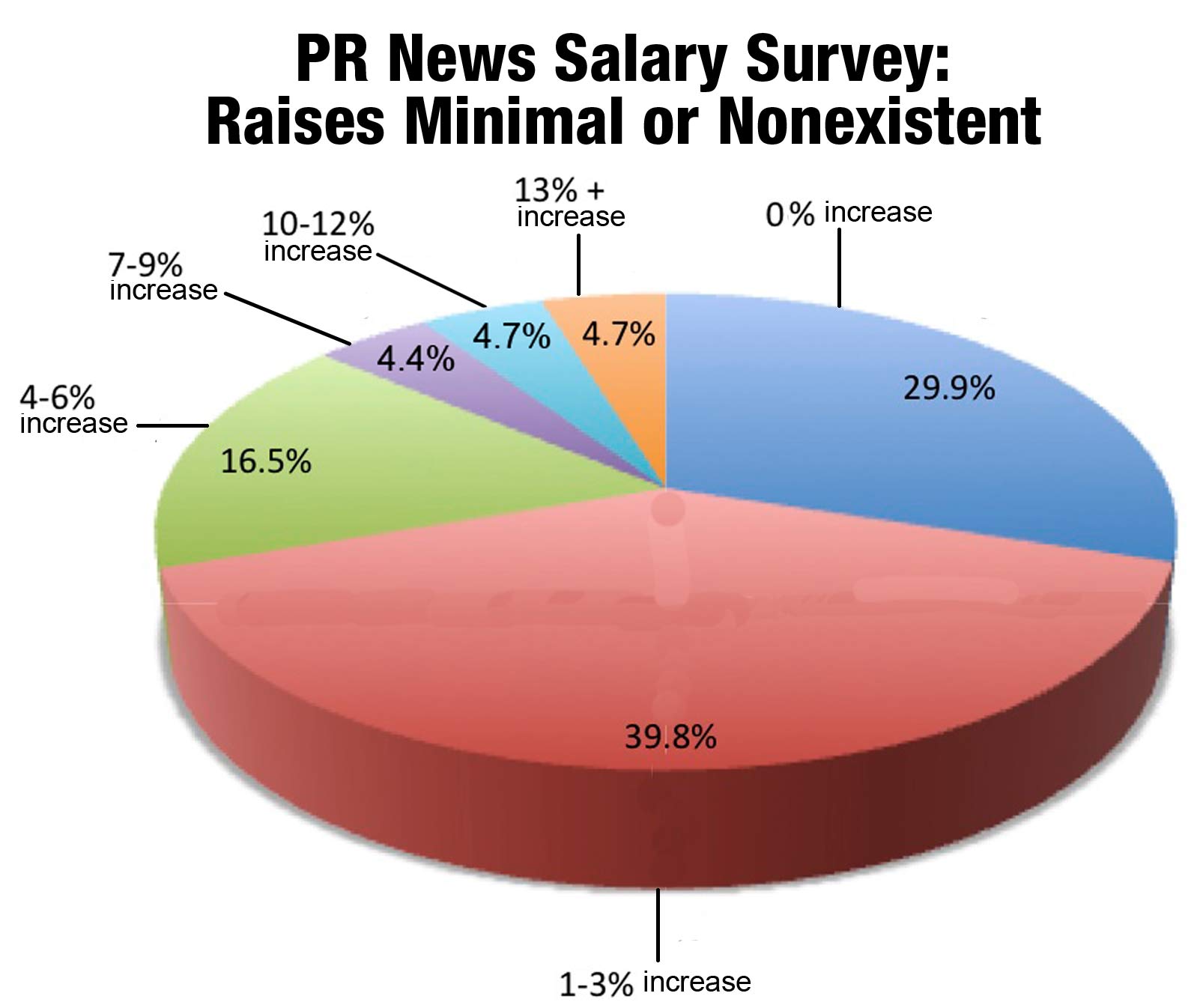 With the economy still in flux, this hasn’t been a great time for salary increases among PR professionals, as nearly 30% received no increase at all in 2010, and about 40% garnered 1-3% raises, according to the just-released PR News Salary Survey. PR News subscribers can access the report by contacting Client Services (clientservices@accessintel.com). Source: PR News |